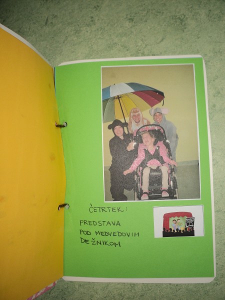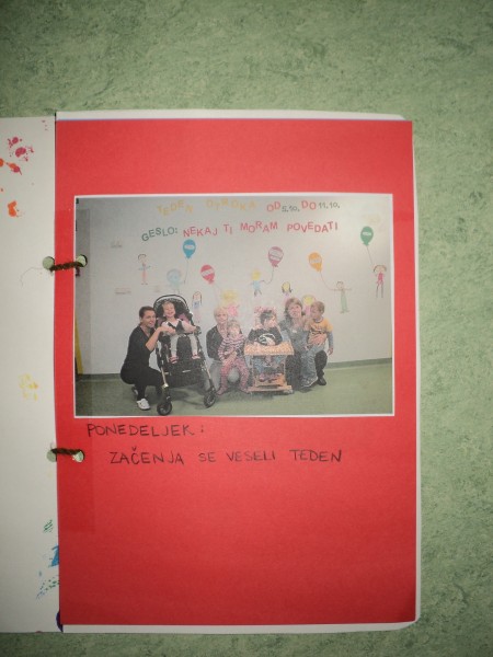 Na temo letošnjega Tedna otroka “Nekaj ti moram povedati”, smo v prilagojenem programu pripravile opis dogajanja preko nadomestne komunikacije. Vsakodnevne aktivnosti smo otrokom predstavile tudi preko sličic. Ob koncu je nastala lepa spominska knjiga.