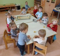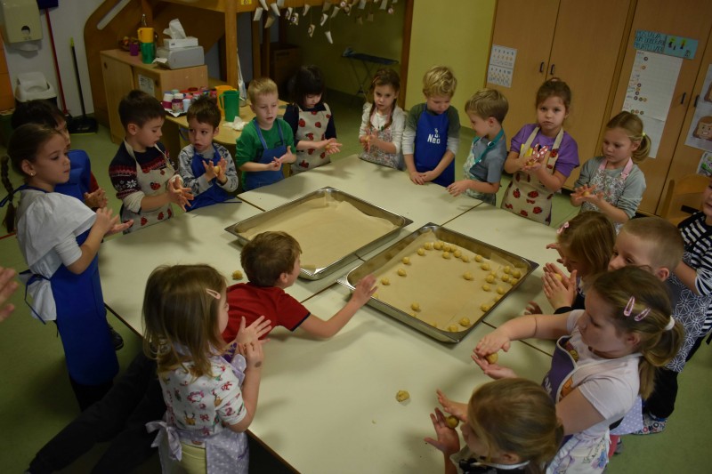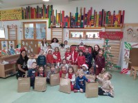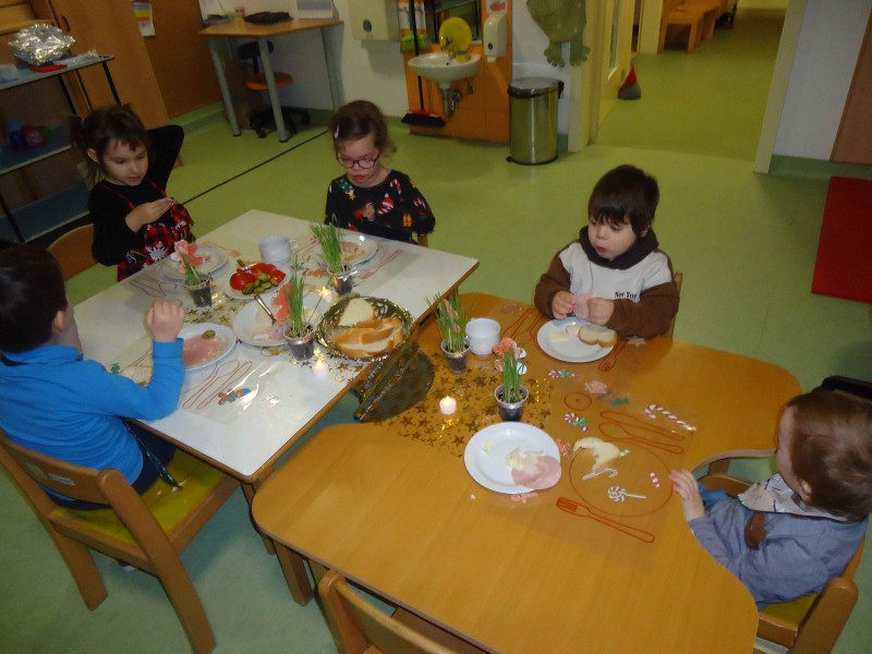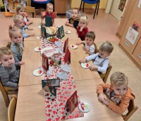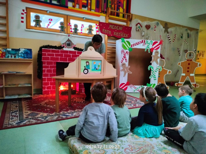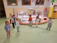 V našem vrtcu se v prazničnem mesecu decembru dogaja marsikaj: izdelovali smo okraske za "medeno deželo", ogledali smo si gledališko predstavo "V medeni vasi", prisluhnili branju pravljic ob kaminu, pekli smo medenjake, se podali na pohod z lučkami, obiskal nas je dedek Mraz in še mnogo več...