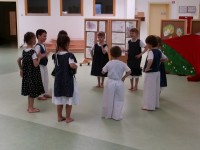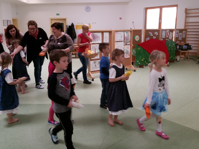 Ob gledanju predstave, poslušanju odraslega in otroškega pevskega zbora smo preživeli prijetno dopoldne, v družbi upokojenk Vrtca Murska Sobota. Z veseljem so ponovno pokukale v vrtčevski vsakdan in obujale prijetne spomine.