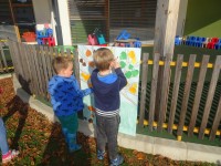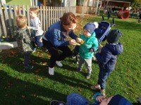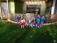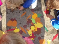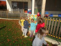 Otroci iz celega vrtca smo razvrščali liste, jih opazovali in iskali drevo h kateremu pripadajo.