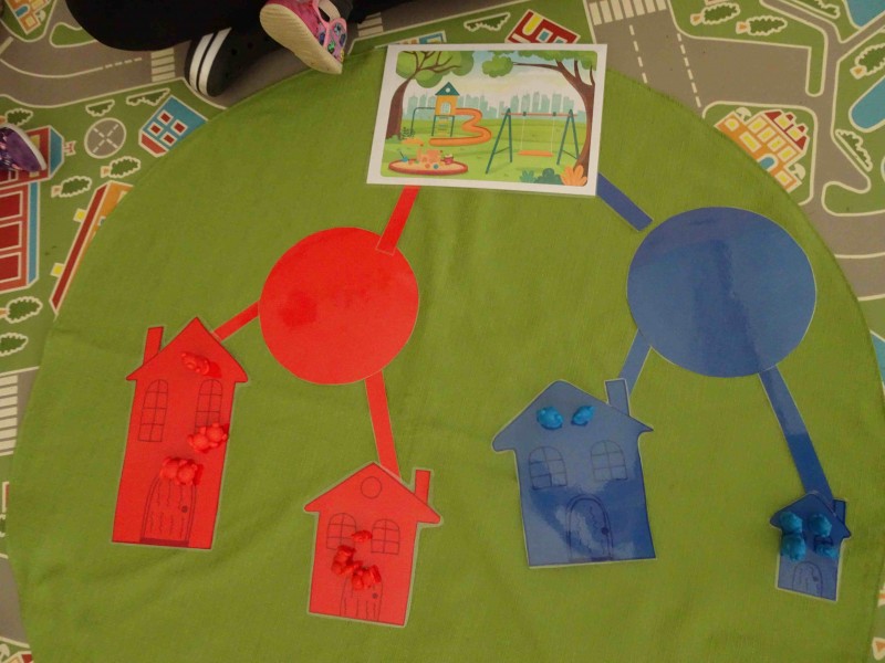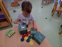 V okviru projekta RINKO, katerega namen je razvoj temeljnih znanj računalništva in informatike v vrtcih, izvajamo številne aktivnosti, kot npr.: razvrščanje po barvi in velikosti, prirejanje in sestavljanje po navodilih - po slikovni predlogi. Usvajanje omenjenih veščin, se nismo lotili z uporabo zaslonov, ampak s pomočjo izdelanega didaktičnega materiala, katerega namen je razvoj matematičnega mišljenja v vsakdanjem življenju, ki je neposredno v povezavi z razvojem digitalnih kompetenc in temeljnih znanj računalništva in informatike.
