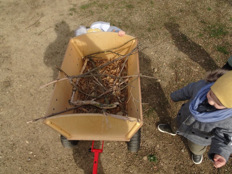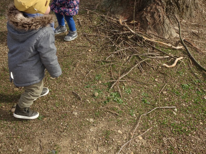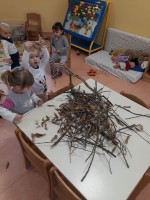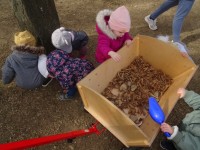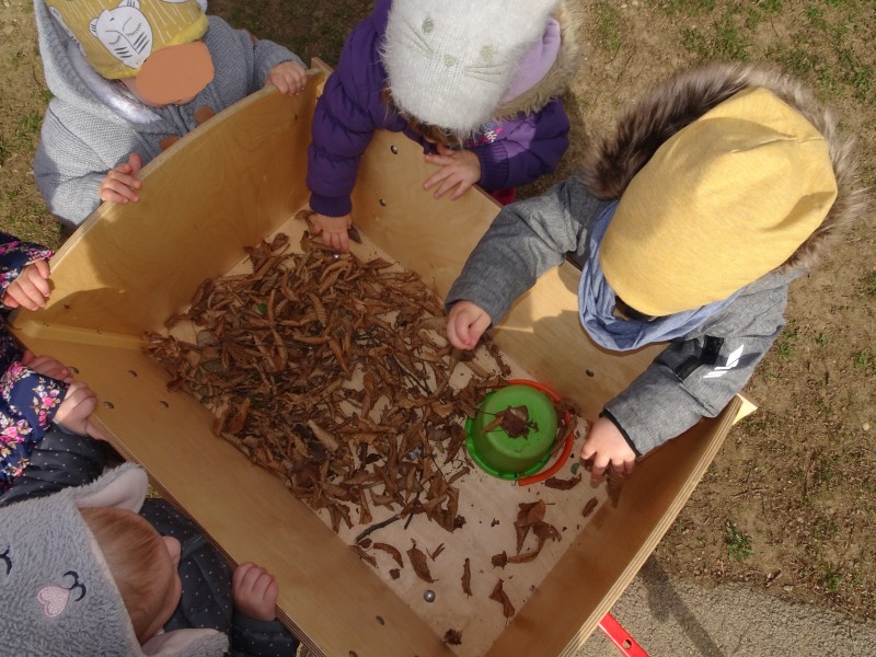 Tudi nas najmlajše v vrtcu je toplejše vreme povabilo na naše igrišče, kjer smo iskali različne naravne materiale. Z njimi smo rokovali in jih nekaj prinesli v našo igralnico.