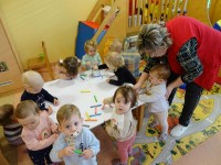V skupini 1 – 2 leti vsaki dan spoznamo kaj novega. Skupaj telovadimo, si ogledamo lutkovno predstavo, prepevamo, plešemo in veliko ustvarjamo. Po vsem delu se nam pa prileže dobra malica…