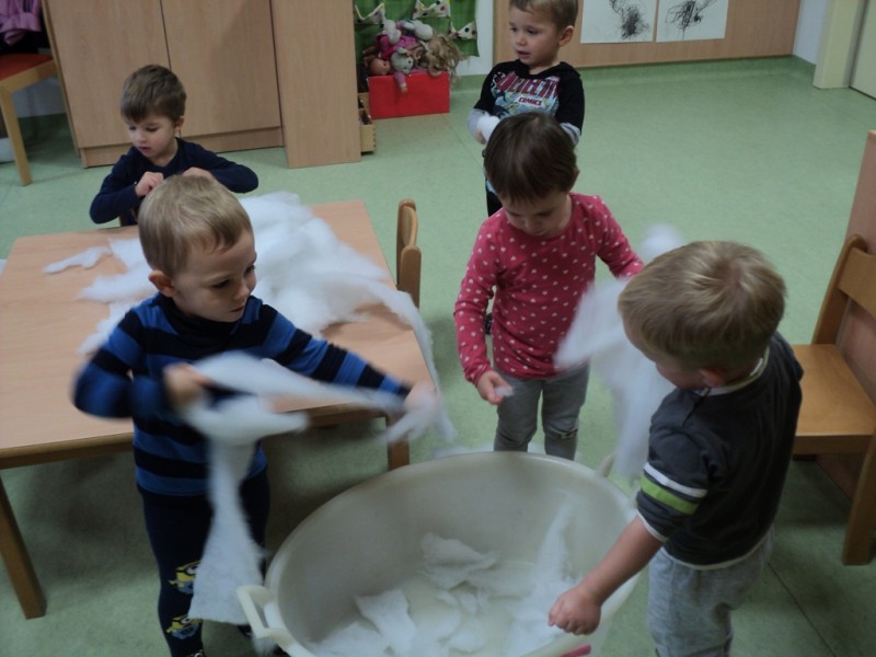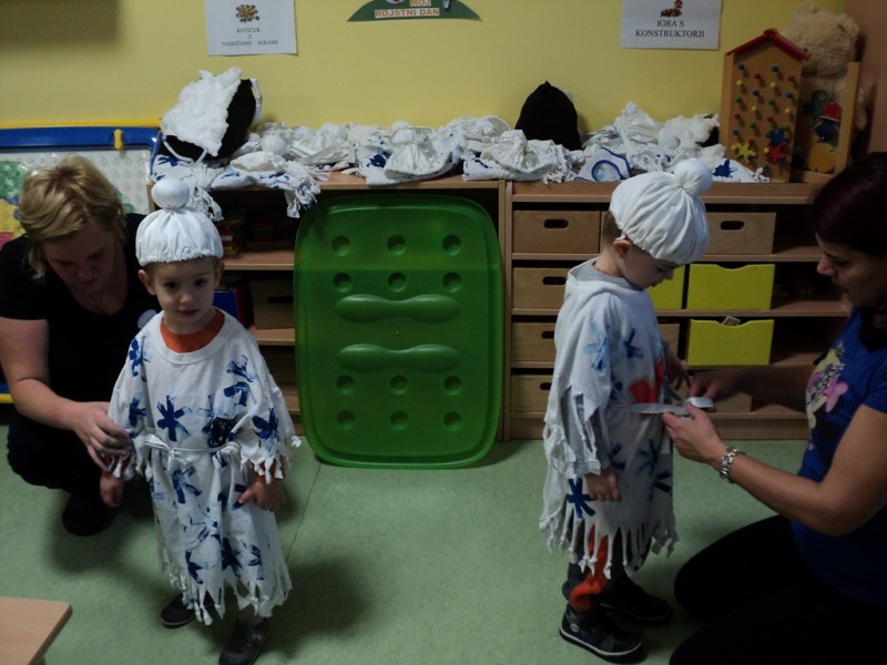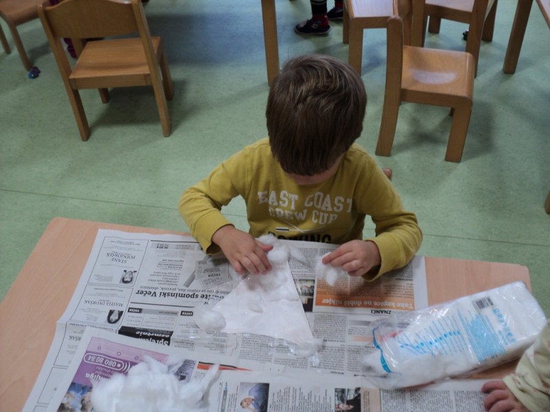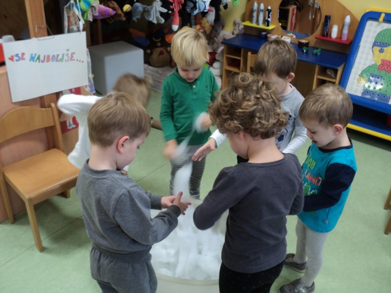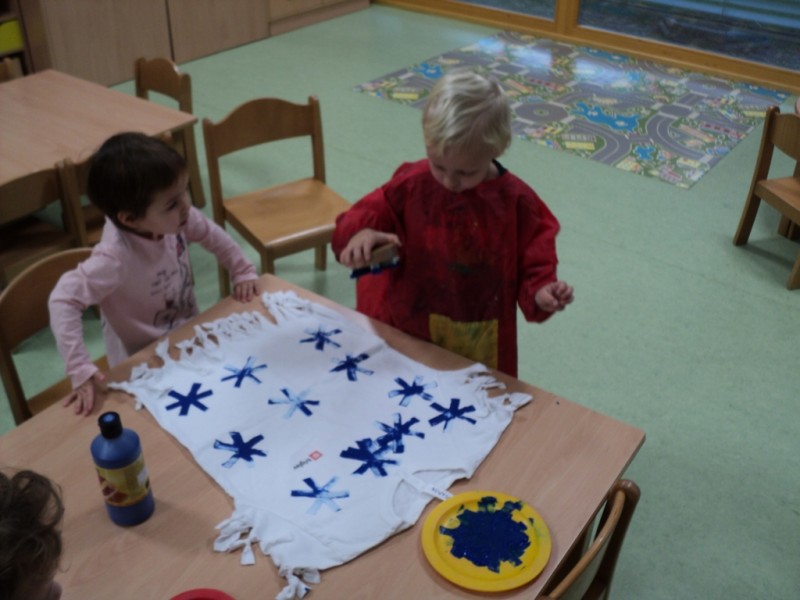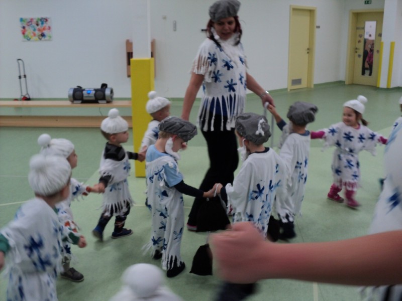 Otroci iz vrtca Gozdiček smo pripravili plesno koreografijo Snežinke. Iz starih majic, katere so otroci prinašali od doma smo si naredili kostume. Na majice smo odtisnili snežinke, naša prijazna šivilja Milena nam je sešila pokrivala. Ples nas je družil in povezal tudi z ostalimi iz našega vrtca, ki so se nam večkrat pri plesu pridružili. Ob tem smo spoznali podrobneje poklic šivilje, prodajalke (kupit smo šli blago za pokrivala) in tudi to, da so stare majice še uporabne. Pred praznično delavnico s starši je sledil naš prvi nastop in naš mini »projekt« se je uspešno zaključil.