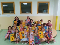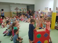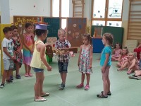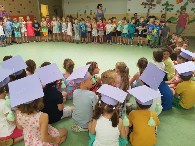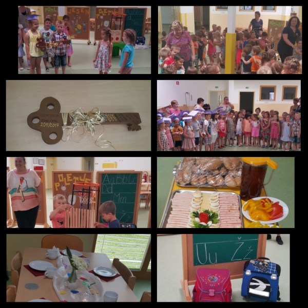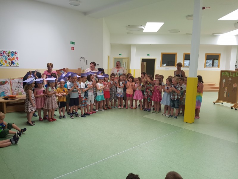 Otroci iz srednjih skupin smo našim bodočim šolarjem pripravili slavnostno malico,darila in še zadnjič skupaj z njimi rajali. Želimo jim vse lepo na novi poti...