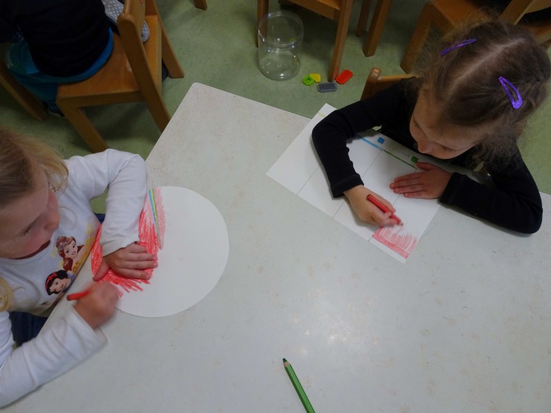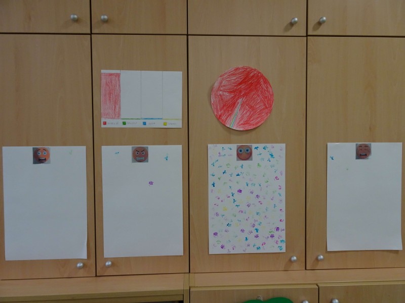 Z otroki smo se v mesecu marcu posvetili spoznavanju čustev. Najprej smo preko zgodb spoznali vsa osnovna čustva (veselje, žalost, jeza in strah). Ponazarjali smo jih z mimiko obraza in držo telesa, ter se pogovarjali o tem, kdaj oz. zakaj se tako počutimo. Dnevno smo beležili čustveno stanje v grafe in nato izdelali tortni in stolpčni diagram. Naučili smo se gibalno igro s petjem-bans Zakaj pa joče? (Mira Voglar).