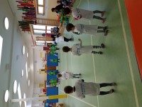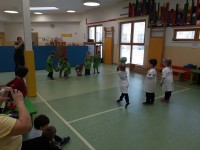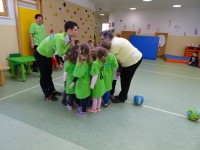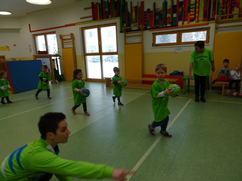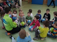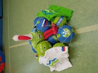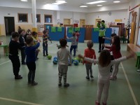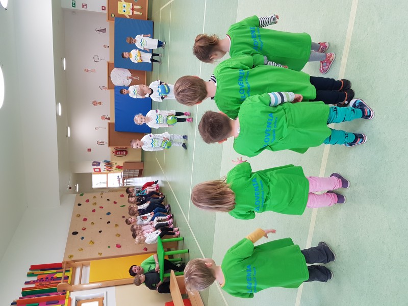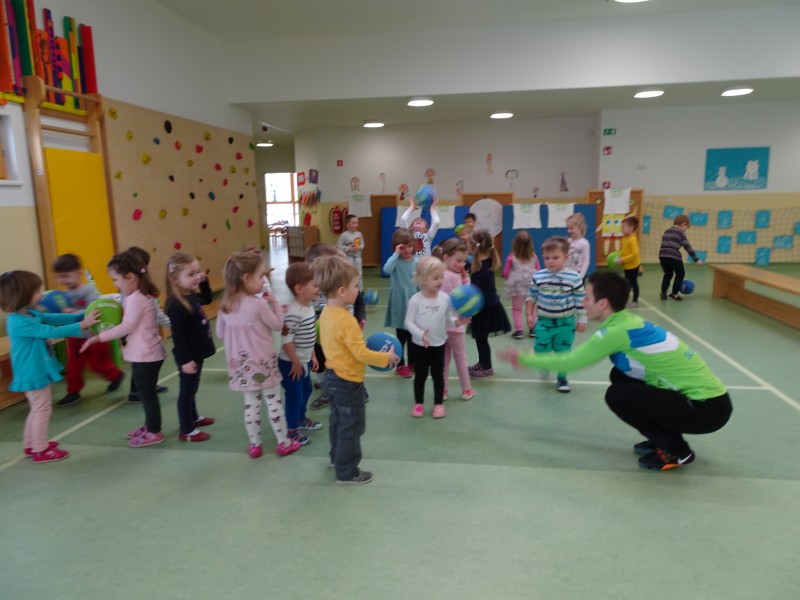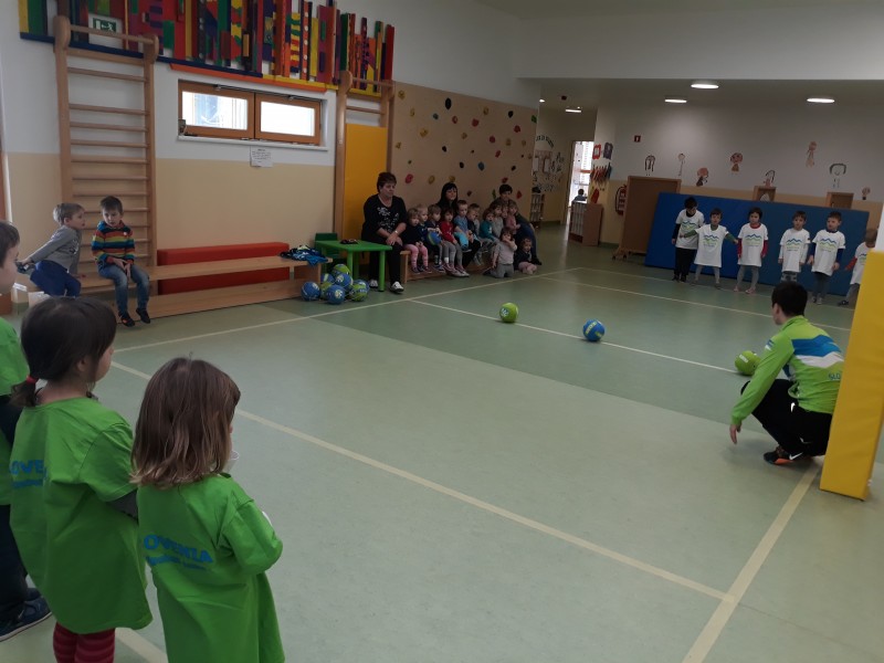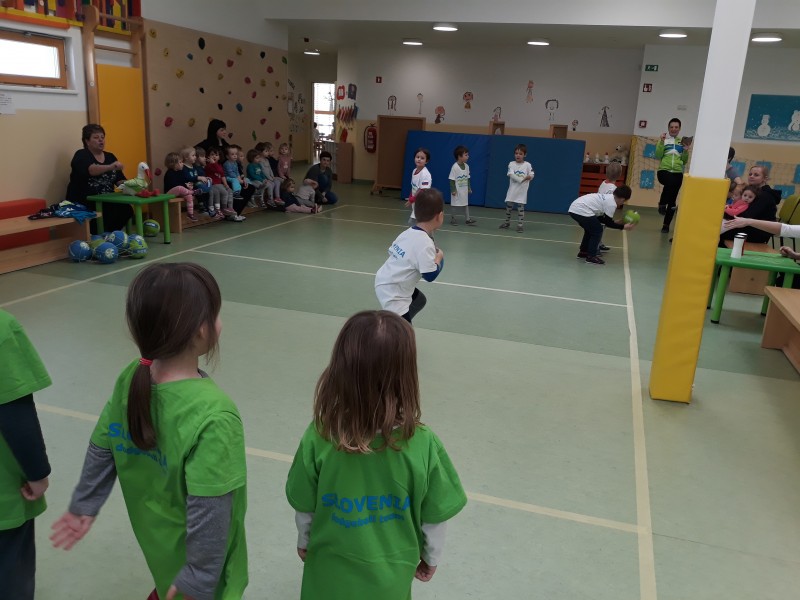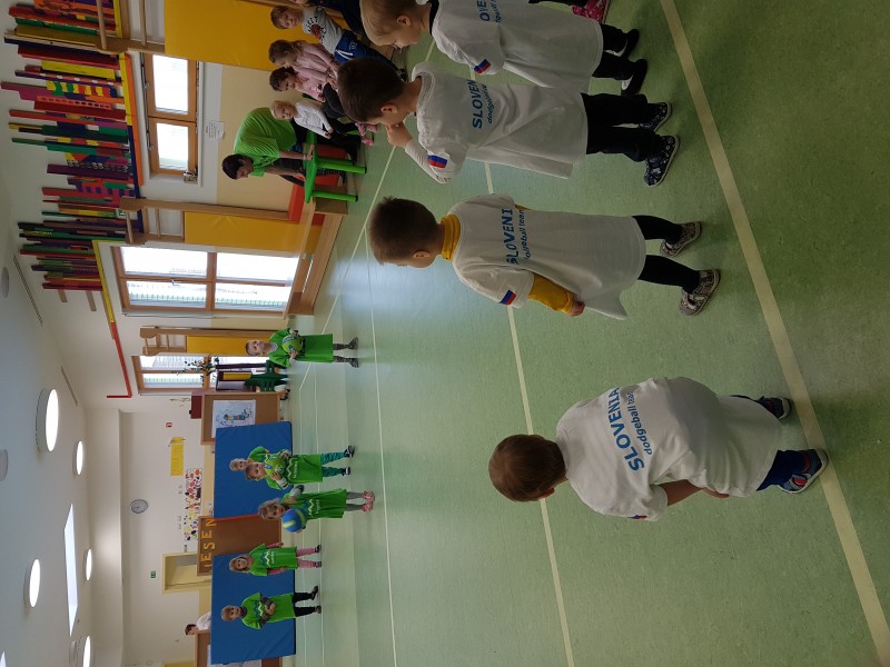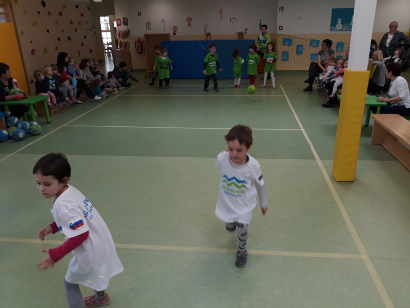 V vrtcu Murska Sobota smo se seznanili z igro, ki se igra z več žogami in celo zaigrali pravo tekmo za Slovenijo. Igrali smo z žogami, s katerimi trenirajo člani slovenske reprezentance in oblekli reprezentančne drese. Za pravila, ki nam jih je razložila Mojca so skrbeli sodniki – vzgojiteljice.