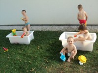Radi se igramo z in ob vodi, se škropimo in iščemo senco.