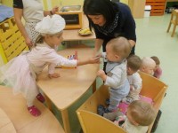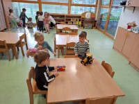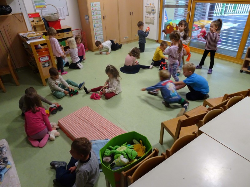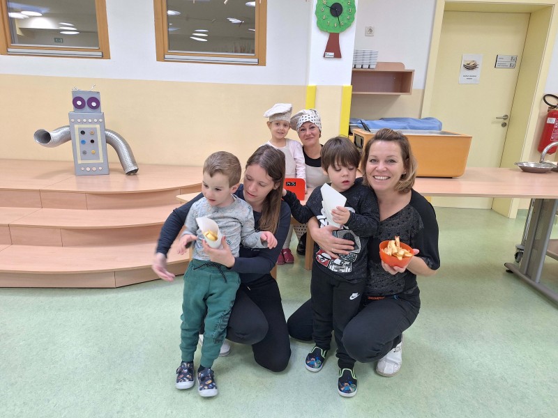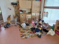 Teden smo pričeli s pogovorom o prijaznosti in navajanjem na uporabo vljudnostnih izrazov, uživali smo na pikniku s pomfrijem, kjer smo poskrbeli tudi za denar in škrniclje, da je bilo vse pripravljeno za skupno druženje. Obiskala nas je pravljičarka Ana iz Pokrajinske in študijske knjižnice v Murski Soboti, ki nam je prebrala pravljice o prijaznosti – otroci so bili razporejeni po skupinah, kar je omogočilo bolj prijetno branje in poslušanje. Igra z igračami od doma, pri čemer smo vadili izmenjavo, izposojanje igrač prijateljem in uporabo besed prosim in hvala, je bila še posebej zabavna. Teden smo zaključili z otroškim rajanjem ob glasbi na prostem, kjer so se otroci sproščeno zabavali ob plesu, lovljenju in igri.