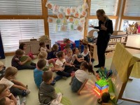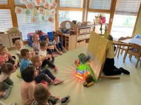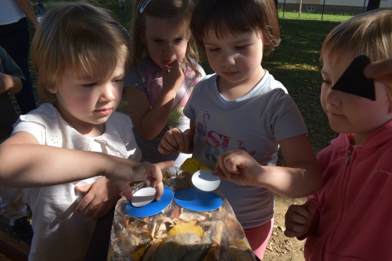 V naši skupini smo prvi dan v tednu otroka bili radovedni, za kaj vse lahko uporabljamo navadno plastično vrečko. Otroci so povedali veliko različnih stvari: »Vrečka je prozorna in nima barve. V vrečko lahko damo paradižnik, gobe, lego kocke, itd.« Skupaj smo prišli na idejo, da lahko vrečko napolnimo tudi z odpadnim listjem, in tako so nastale naše sovice oziroma družina sovic. Otroci so ob tem poslušali tudi zgodbo Mami, kje si? (Martin Waddell). Otroci so spoznali, da lahko tudi plastične vrečke uporabimo na več načinov in večkrat.