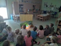 Predšolskim otrokom je bil pojem radovednost predstavljena v obliki lutkovne predstave dveh prijateljev, - zajca in medveda- ki sta iskala odgovor na vprašanje, kaj je to radovednost? Preko vprašanj (zakaj) in odgovorov (zato) smo z otroki prišli do različnih zaključkov. Skozi pogovora z lutkama, so ugotovili, da so tudi oni večkrat v tej vlogi - radovednež znajdejo. Radovednost je pravzaprav koristna in zaželena lastnost, so narekovala razmišljanja otrok.