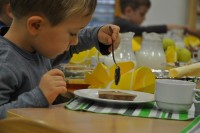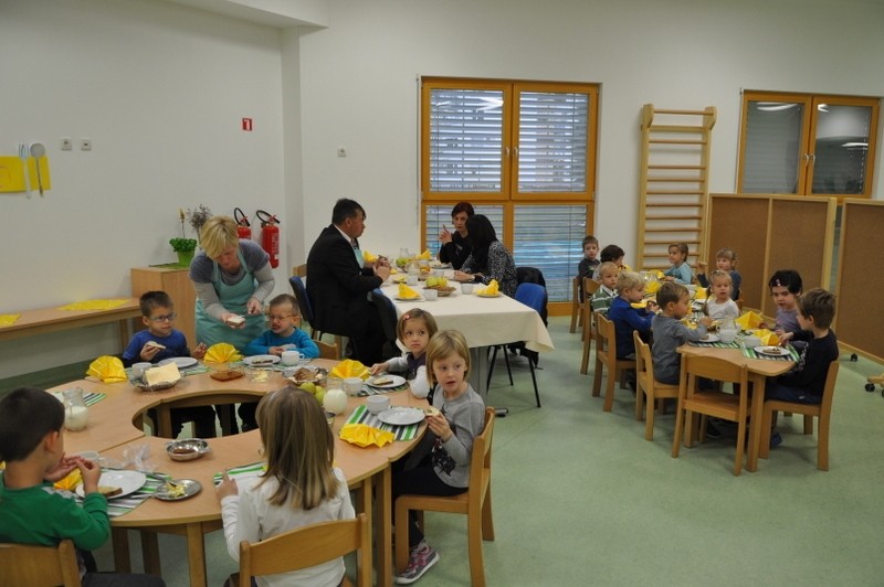 Danes smo v naši enoti skupaj z županom g. Jevškom imeli pravi slovenski zajtrk. Teknila nam je hrana, ki je bila pridelana v našem okolju. Domač kruh iz kmečke peči namazan z maslom in medom nam je bil zelo dober, kakor tudi domače mleko in okusna ter sočna jabolka.