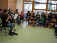 Spoznavali smo instrumente, ob njihovem zvenu pripevali znane pesmi, se učili novo pesmico, nato pa se prepustili ustvarjalnemu izražanju.