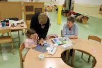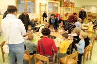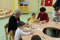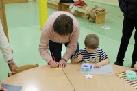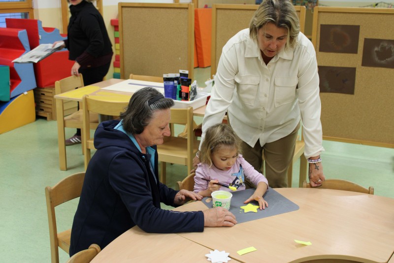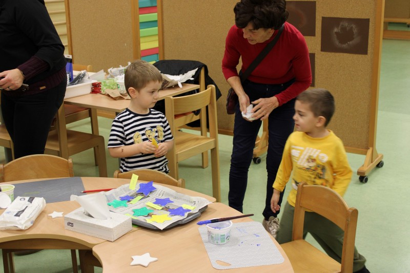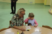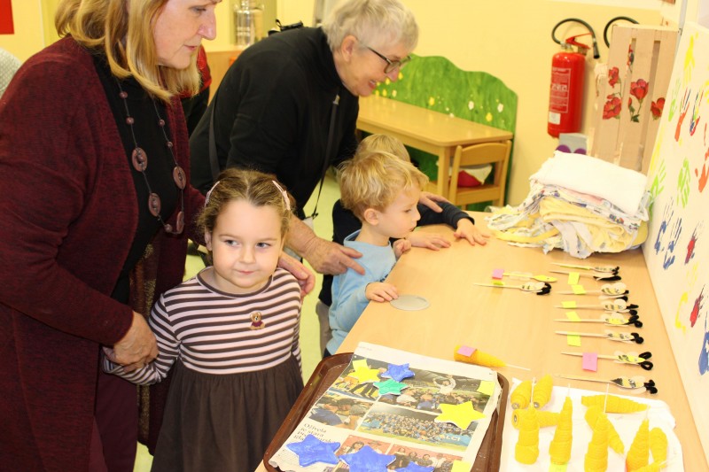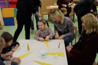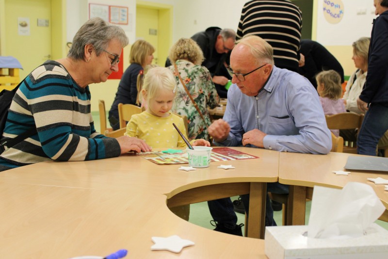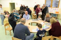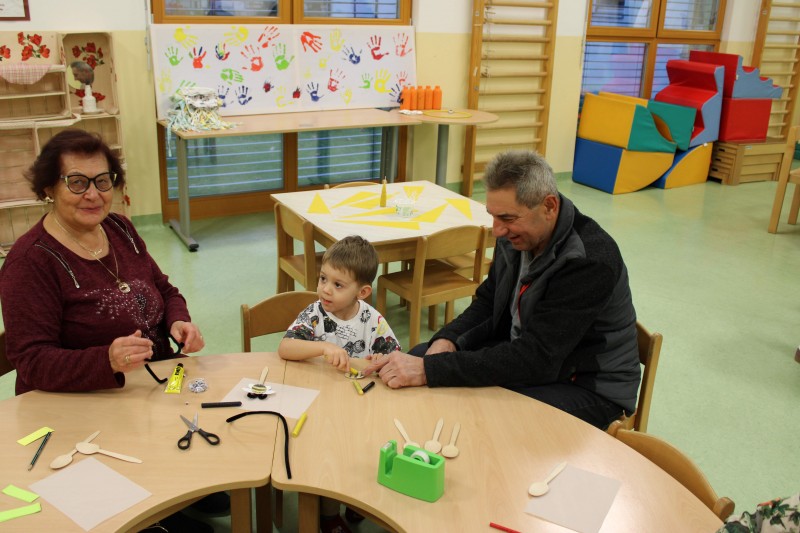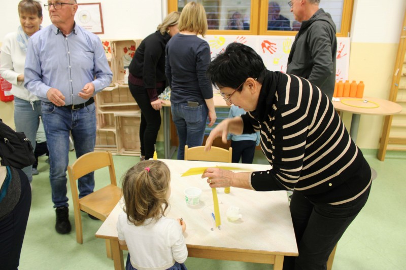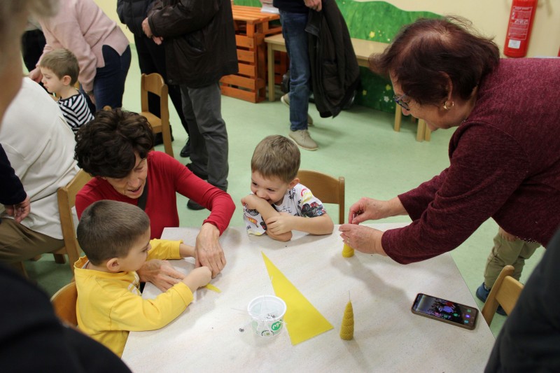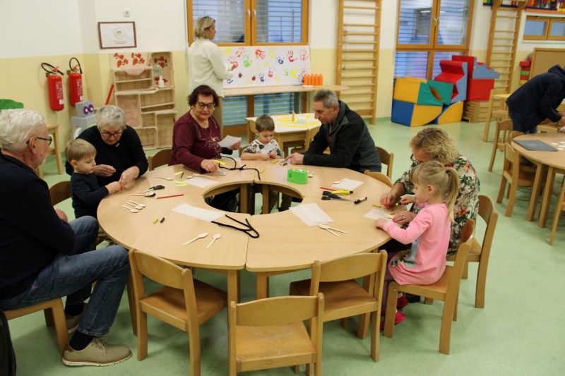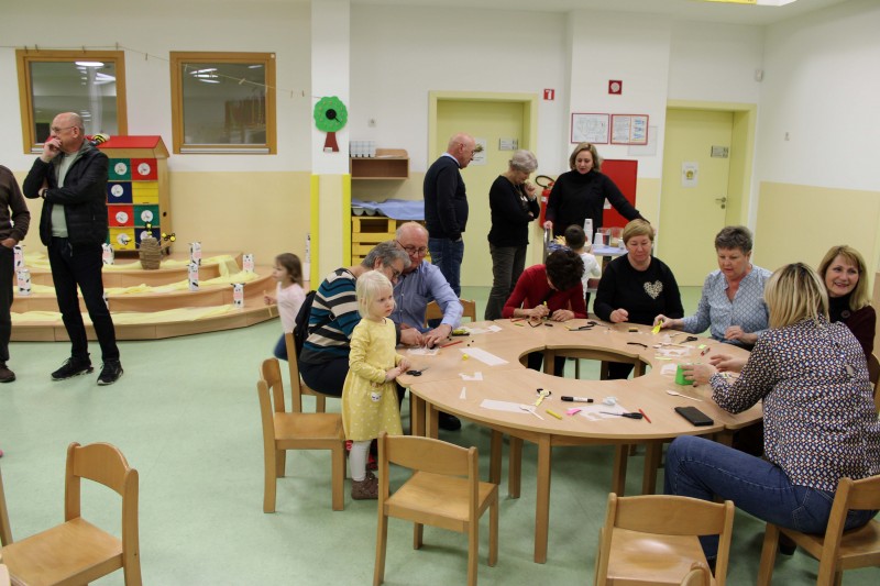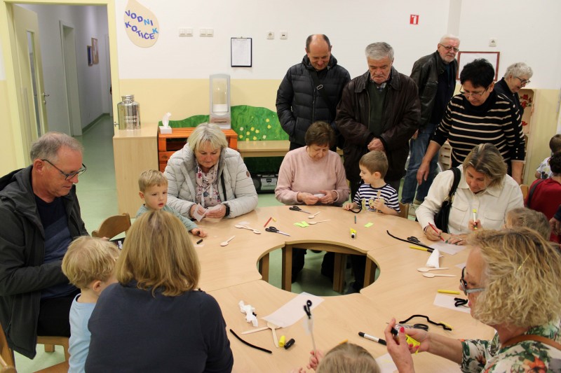 Delavnica z babicami, dedki ter njihovimi vnukinjami in vnuki je potekala v sproščenem in veselem vzdušju, polnem ustvarjalne energije in medgeneracijskega povezovanja. Otroci so skupaj s svojimi starimi starši z veliko zavzetosti izdelovali čebelice iz lesenih žlic in papirja, nato še dišečo svečo iz satne osnove, ter svečnik. Med delom so se prepletali pogovori, smeh in drobni nasveti izkušenih rok, otroci pa so z iskrivim navdušenjem sprejemali vsak ustvarjalni izziv.