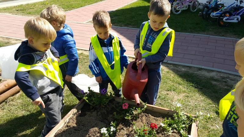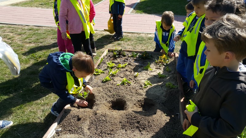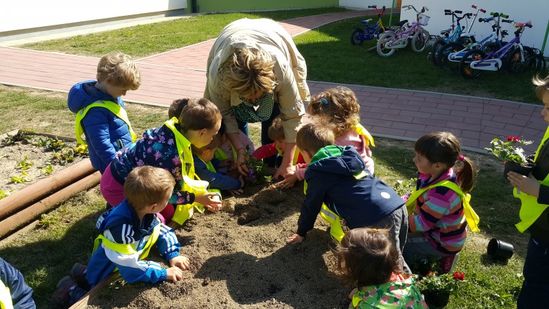 Obiskali smo tržnico v mestu in kupili nekaj rastlin za sajenje. Nekaj rož nam je prijazna prodajalka iz Vrtnarstva Velcl podarila. V vrtcu smo rože in zelje posadili, zalili... . V prihajajočih dneh bomo skrbno skrbeli za rastline, opazovali spremembe.