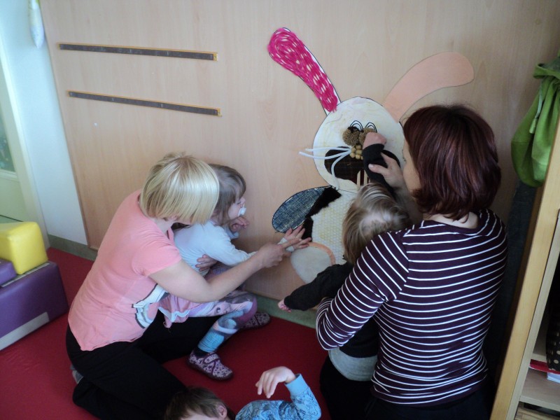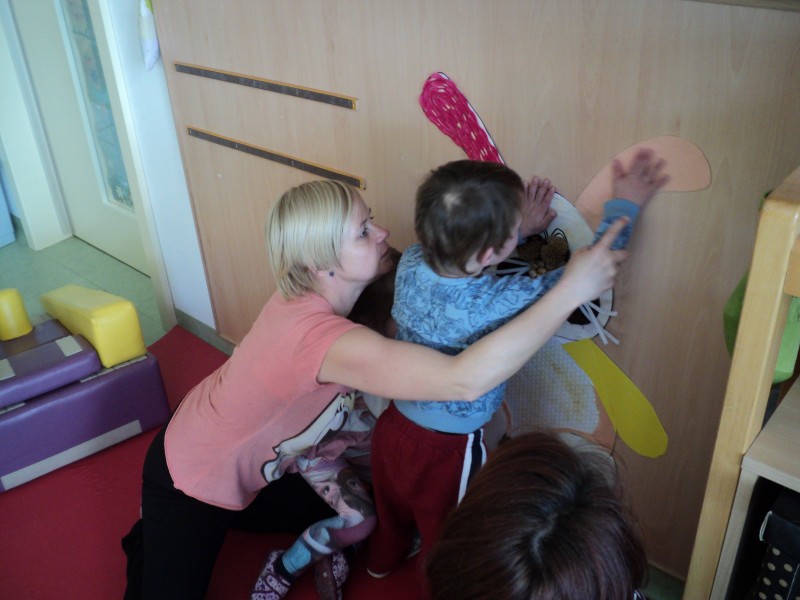 Preko različnih didaktičnih materialov smo spoznavali zajčka z vsemi čutili. V ta namen smo si ustvarili  senzornega zajčka, ki nam bo omogočil pridobiti čim več čutno – gibalnih izkušenj.