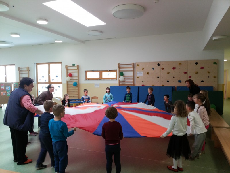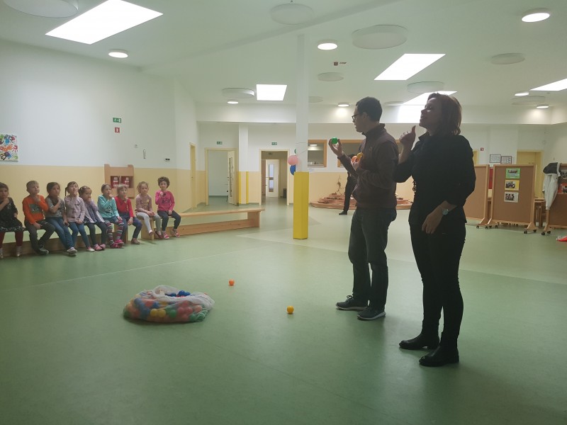 V našem vrtcu nas je obiskal g. Damjan Šebjan, ki nam je približal znakovni jezik. Preko igre smo spoznali znake za barve, ploskanje in še kaj... . Veseli smo, da smo spoznali to obliko komunikacije in začutili, da se tudi z znakovnim jezikom lahko "pogovarjamo"... .