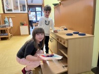 Sabina nam je napisala in uglasbila čudovito pesmico Miške pečejo potičke. Otroci so jo v pričakovanju praznikov peli vsak dan bolj pogumno in glasno.