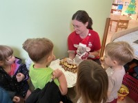 Otroci so vsebinam sledili z veliko skledo radovednosti in veliko žlico dobre volje, s čimer so soustvarjali praznično vzdušje v našem vrtcu.