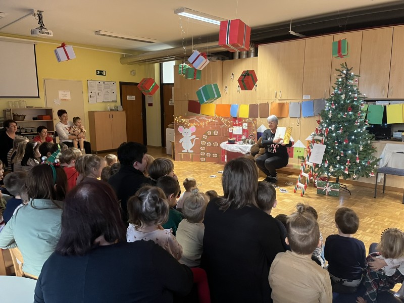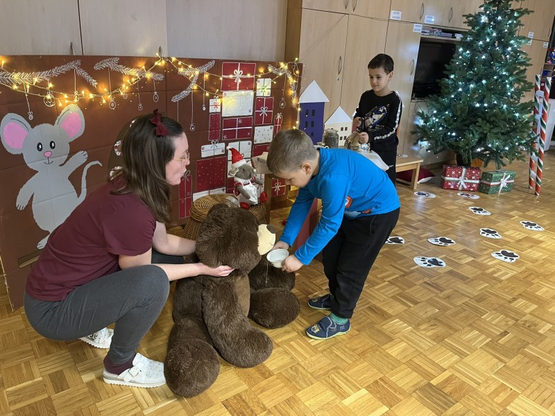 Otrokom je na vprašanje odgovarjal mišek Luka s pravljico Božične potičke za vse. Kuharica Sonja nam je pokazala, kako jih v Lukovi pekarni pečejo. Slastne potičke so otroci vonjali in okušali. Tudi oni so spekli svoje. Naslednji dan so vsi zavoji s potičkami izginili, zato so jih morali otroci najti. Rešili so uganko – ugotovili so, da je pojedel medved Oto. Ker ga je začel boleti trebuh, smo mu skuhali čaj. Luka je moral s svojim atijem speči nove za celo vas, saj potičke za božič ne smejo manjkati. Sledila je zabava ob prazničnih pesmicah, ki nam jih je zaigrala Martina, otroci pa so ji pomagali peti. Skupaj smo še zarajali.