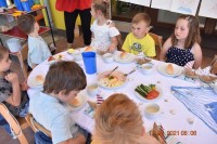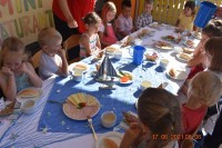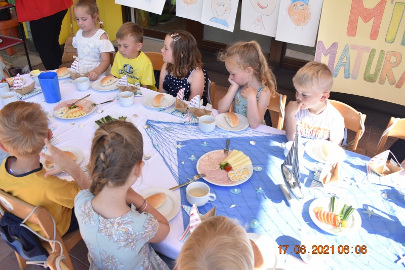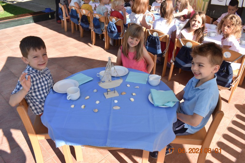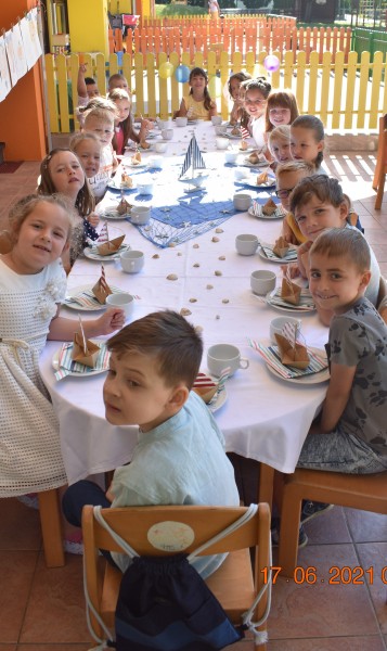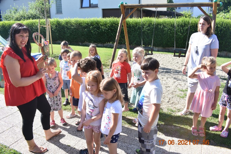 Ob tej pomembni prelomnici, kot je že tradicija, so se od njih poslovili tudi ostali otroci. Pred slavnostno malico na terasi vrtca, so se mlajši otroci poslovili s kratkim nastopom: se zahvalili in jim zaželeli vse najboljše na njihovi novi poti, zaigrali lutkovno predstavo in zapeli nekaj pesmic.