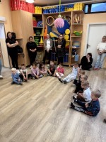 V okviru projekta RINKO - temeljna znanja računalništva in informatike - brez uporabe zaslonov, sta inovativni oddelek enota Ringa Raja in Romano pripravila popoldansko delavnico za družine vključenih otrok v vrtec. Ogledali so si mini gledališče z naslovom PRITISNI TUKAJ!, se seznanili z igro socialnih interakcij ter izvajali aktivnosti v okviru 2. mavričnega tedna.
