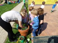 Ob dnevu ZEMLJE smo pripravili kulturni program, izobesili EKO zastavo, zapeli EKO himno, uredili cvetlične in visoke gredice, posejali in posadili zelišča, rože, zelenjavo. Ob vsem tem so otroci uživali, naklonjeno nam je bilo tudi lepo sončno vreme. Zdaj že nestrpno čakamo, da bodo semena vzklila, sadike zrasle in rože zacvetele.