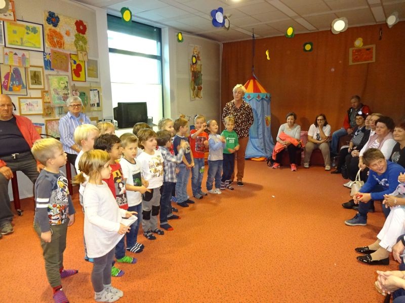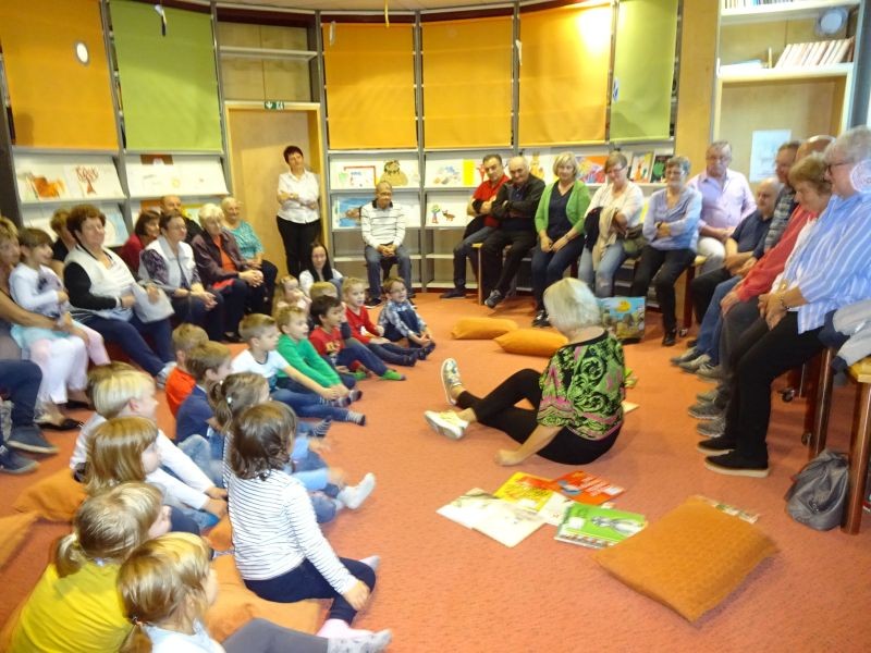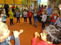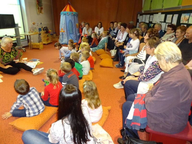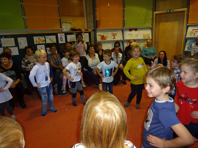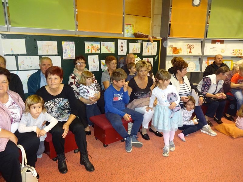 Da bi se svojim dedkom in babicam zahvalili za njihovo pomoč, ljubezen in potrpežljivost smo jih povabili na pravljično uro v Pokrajinsko knjižnico v Murski Soboti. Skupaj smo odpotovali v čudovit svet pravljic. Naše srečanje smo popestrili s kratkim nastopom. Za vsakega smo pripravili darilo, ki so se ga naši dedki in babice zelo razveselili.