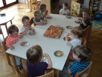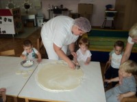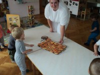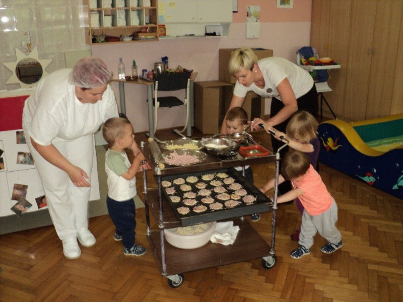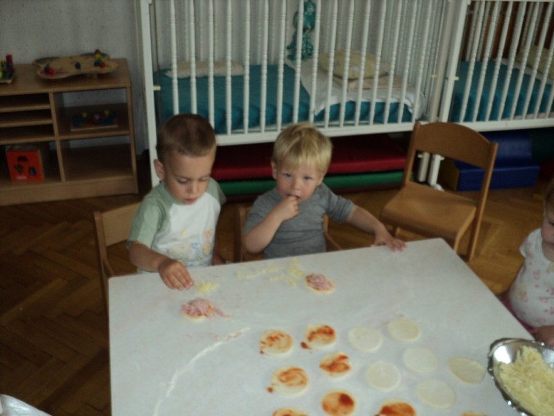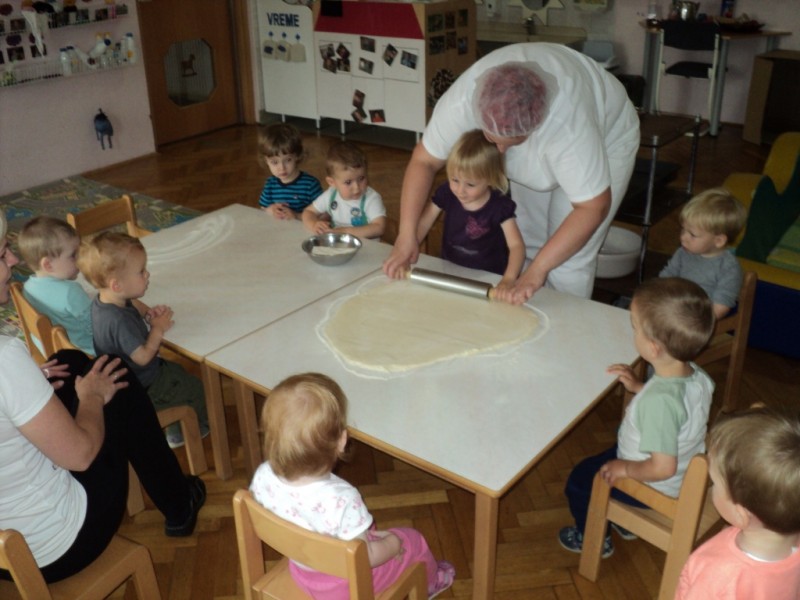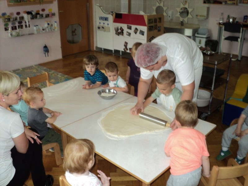 Današnji deževni dan nam je popestrila kuharica Suzana. Z njo smo pripravljali pica polžke.