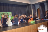 V skupini Zajčki so otroci izrazili željo ustvarjanja z lutkami. Tako se je porodila ideja, da ustvarimo lutkovno predstavo. Izbrali smo zgodbico Poppy Bishop »Medvedkova knjižnica«, ki nam je bila najbolj všeč. Skupaj smo poiskali rešitve kako postaviti sceno, katere lutke uporabiti v predstavi in katera glasba naj spremljala predstavo. Nato smo pričeli z delom. Med vajami smo uživali in se veliko smejali.