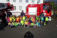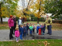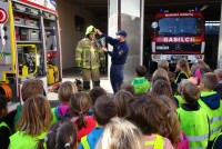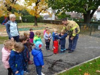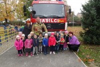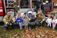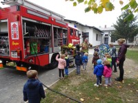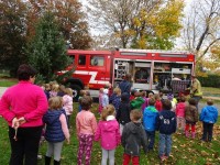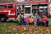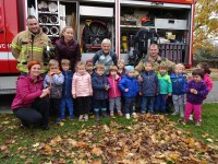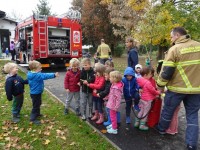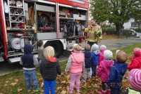 V petek 27.10.2017 so k nam že tradicionalno prišli gasilci, da nam predstavijo poklic gasilca in razkažejo gasilsko vozilo z opremo. Polni pričakovanj smo se odpravili na igrišče, kjer so nas že pričakovali. Radovedni obrazki so se obračali proti mogočnemu gasilskemu vozilu. Gasilca sta otroke podučila kam pokličemo, v kolikor nas preseneti požar, in kako pri njih izgleda intervencija. Skoraj vsak se je pomeril tudi v brizganju vode s hitro cevjo in moramo priznati, da so bili nekateri kar spretni. Nato smo naredili še nekaj čisto pravih gasilskih fotografij.