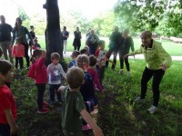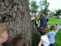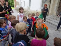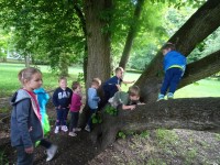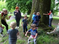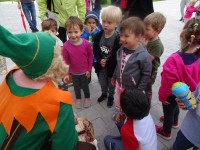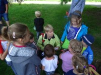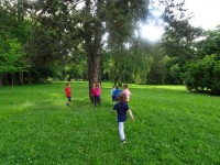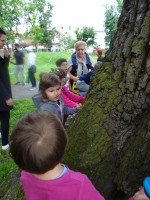 V okviru Malega sončka smo imeli popoldansko družinsko srečanje. Ob podpori mamice Barbare nas je v soboški park povabil škrat Bradolin. Kot je zapisal v pismu, da V PARKU VAS ČAKA PESTER ZALOGAJ NALOG…, je tudi bilo. Sledili smo puščicam, ki so nas pripeljale do vedno novih kotičkov v parku, kjer smo reševali naloge, raziskovali, peli, plesali, merili, opazovali, iskali, prisluhnili zvokom. Otroci so z navdušenjem sledili puščicam, njim pa starši.Tudi škratkov domek smo našli - pod največjo smreko v parku in sporočilo, da je na obisku pri graščaku. Ker smo ugotovili, da to mora biti v gradu, smo prišli do samega škrata Bradolina. Vesel nas je bil in nas pogostil …