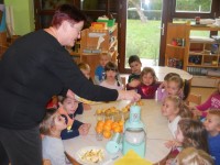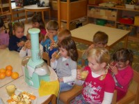 Ne maram banane, ne maram jabolka…so premnogi odgovori otrok na naša ponujanja sadja. Prav zaradi tega smo se odločili vse te »vitamine« prenesti v naše telo v drugačni otrokom bolj zanimivi obliki. Otroci so med pripravo vneto pomagali, komentirali in se veselili poizkušanja. Vsak pripravljen napitek je bil popit do dna. Na zdravje.