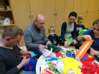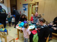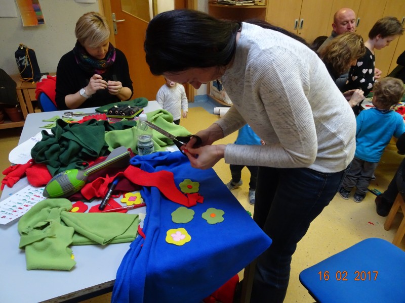Pustni čas je pred vrati. S starši smo se že v začetku šolskega leta dogovorili, da bodo vsi otroci v našem oddelku (2 -3 let) na pustni torek pomladni škratki. Zato smo se lotili dela. Vsi, mali in veliki. Na popoldanski delavnici je bila z nami tudi prababica naše Vite Marie, ki je s svojim šivalnim strojem sešila vse, kar smo rabili. S skupnim delom nam je uspelo! Hvala vsem, posebej prababici Nadi. Škratki bomo na pustni torek zagotovo priklicali pomlad.