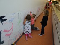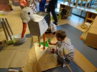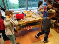 Današnji dan so se otroci zabavali v dvorani s plezalno steno. Nadaljevali smo tudi z delom v ustvarjalnih delavnicah, kjer so otroci dokončali izdelke včerajšnjega dne. Popoldan smo se družili s starši in otroki vrtca. Zabavali smo se ob reševanju različnih nalog, starši pa so nas pogostili tudi z večerjo.