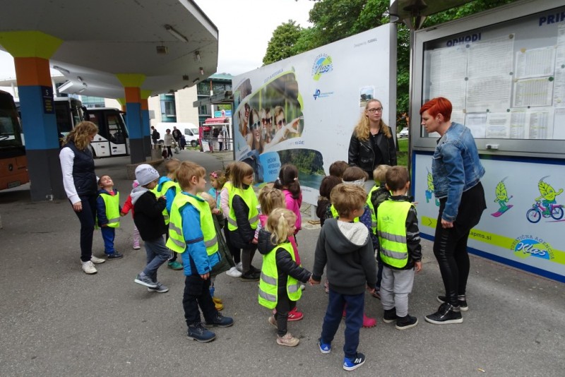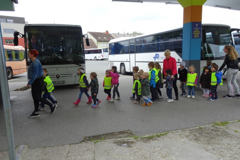 Starejši otroci so se zelo veselili obiska avtobusne postaje, zato so zraven povabili še mlajše otroke. Seznanili smo se z voznim redom in peroni. Gospod šofer nas je povabil tudi na ogled notranjosti avtobusa.