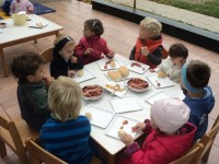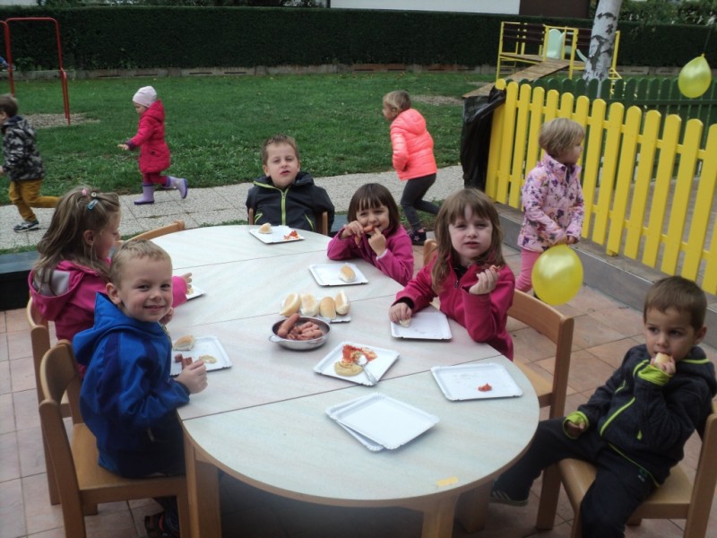 V tednu otroka so pri nas potekale različne dejavnosti, tako na prostem kot po skupinah. Otroci so se lahko preizkusili v različnih gibalnih igrah, orientacijskih pohodih, v izdelovanju zmajev, telefonov, se družili na igrišču ob glasbi. Imeli so možnost se poigrati v drugih igralnicah, si izmenjati igrače, spregovoriti na otroškem parlamentu. Otroci starejše skupine so obiskali dom starejših občanov, svoje znanje so pokazali na pevskem nastopu, ogledali pa so si tudi razstavo školjk in polžev. Zadnji dan v tednu otroka smo zabeležili s piknikom na prostem in s slastnimi pečenimi hrenovkami.