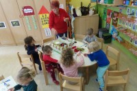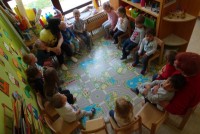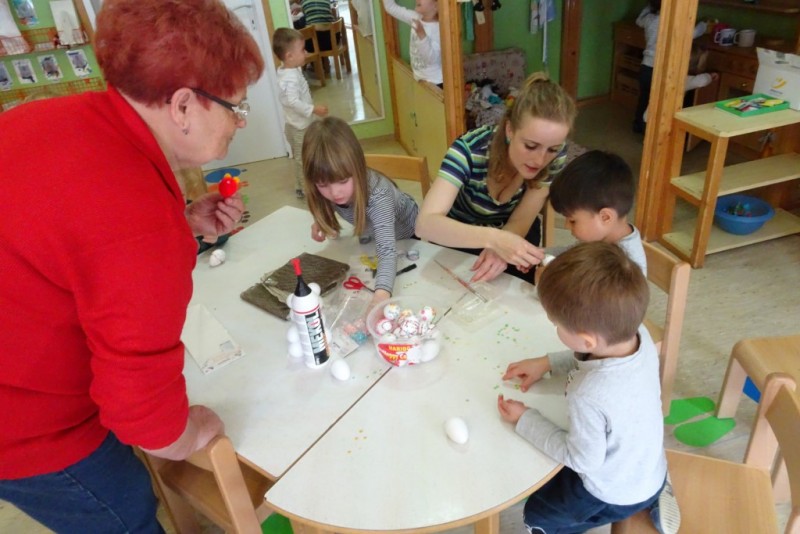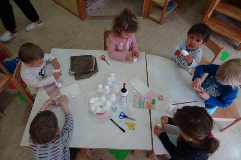 V sredo, 10. 4. 2019, smo imeli v oddelku Sovice, 2-4 let, velikonočne delavnice z go. Elizabeth in g. Ignacem Tibautom in skupaj ustvarjali s spretnimi prstki…….. Najprej smo se igrali socialno igrico Zeleni krokodil in zapeli pomladne pesmice. Zatem smo izdelovali velikonočne zajčke in z drobnim materialom okraševali jajčka. Po končani delavnici sta nam še povedala pravljico o Lisici in volku. Za obisk smo se zahvalili s sliko – Pomlad se prebuja. S polnimi rokami izdelkov in željo, da podobno dogodivščino ponovimo, smo se poslovili. V prijetni družbi nam je čas kar prehitro minil.