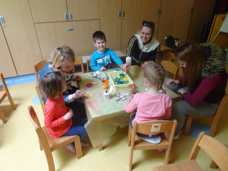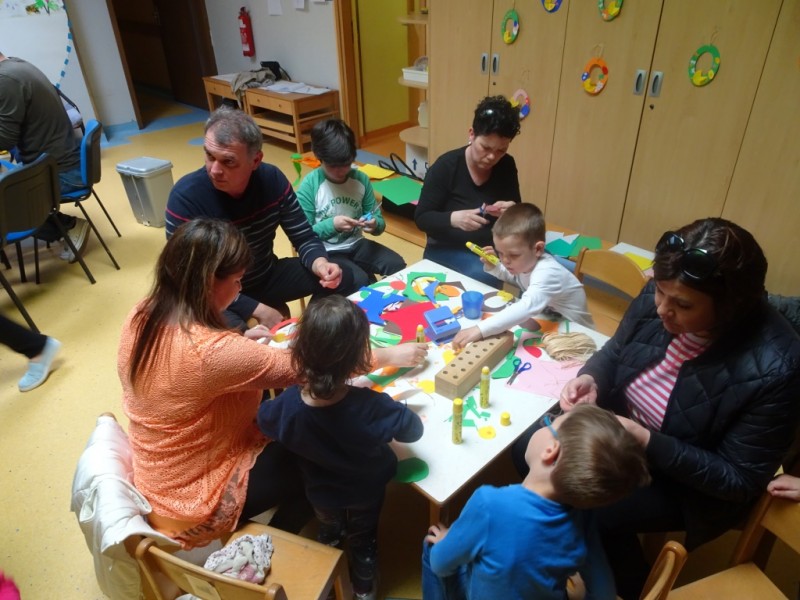 Po dogovoru s starši smo izvedli »velikonočno ustvarjalnico«, ki je to res bila, saj so bili ustvarjalci tako starši kot otroci. Vsi so imeli možnost pokazati svojo domišljijo in kreativnost, kar se je odražalo tudi v končnih izdelkih nad katerimi so bili vsi zelo navdušeni.
