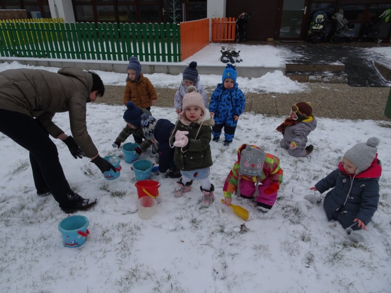 Otroci prvega starostnega obdobja so neposredno imeli priložnost spoznati sneg, z njim so se srečali prvič. Spoznali so nekaj novega , neznanega., nekaj kar se spremeni v vodo….