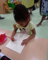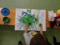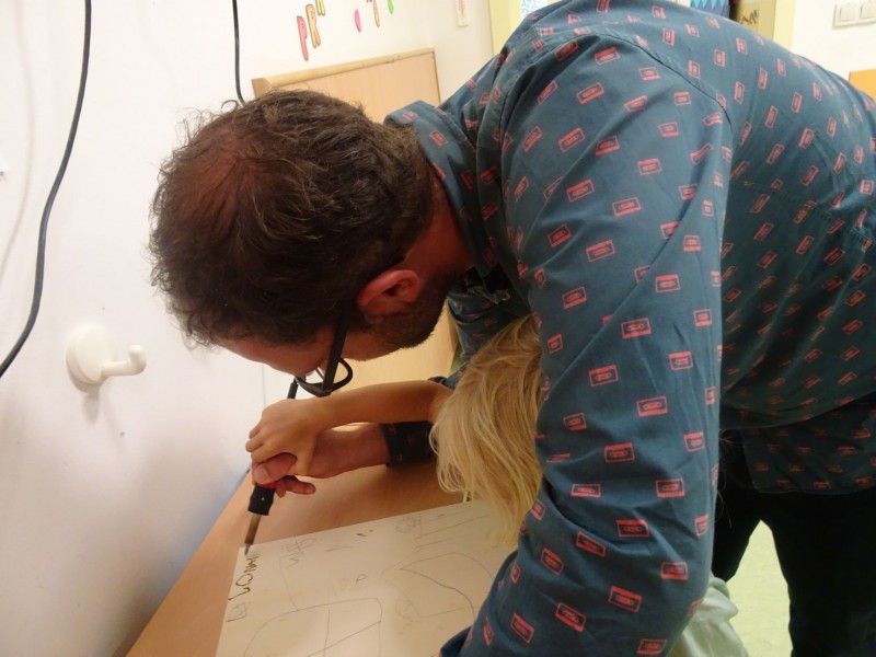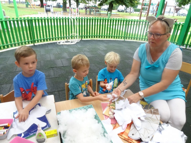 Prisluhnili so pravljici Muca Copatarica in si izdelali lutko. Spoznali so tehniko pirografije in si izdelali vložne mape iz lesa. Delavnice smo zaključili s skupnim ljudskim plesom: Trojka.
