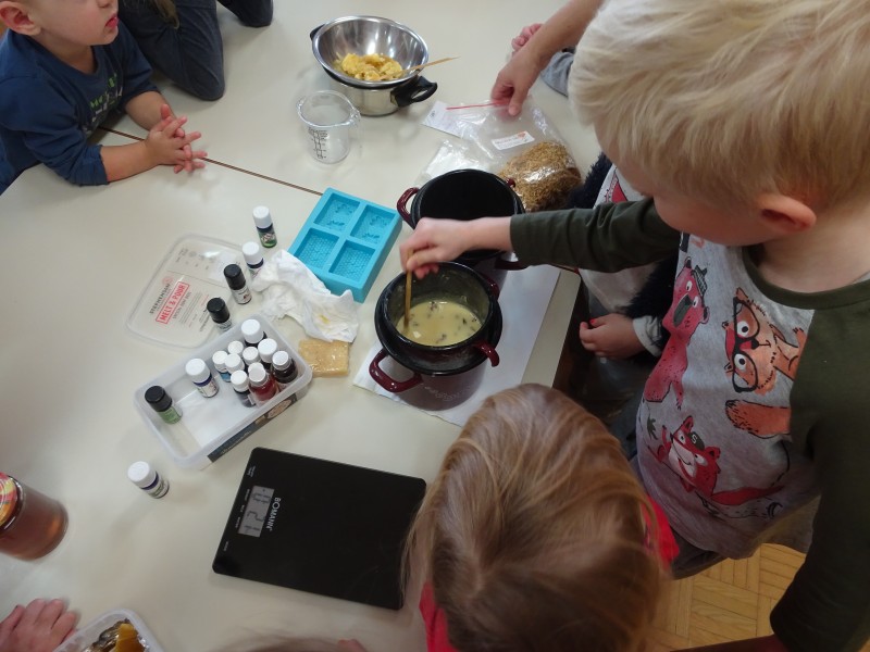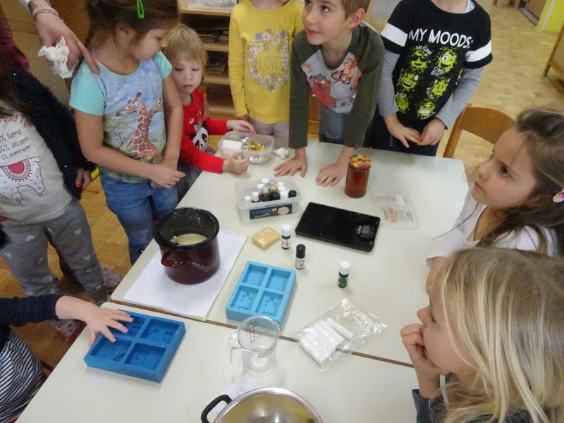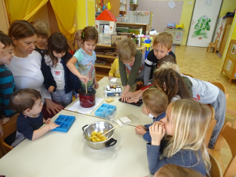Kot Eko vrtec vseskozi skrbimo za osveščanje otrok in odraslih o pomenu varovanja okolja. Del tega je bila tudi izdelava naravne kozmetike, kot so mila in kreme za ustnice. Skozi dejavnost nas je vodila gospa Simona, za izdelavo pa smo poleg osnovnih sestavin uporabili čebelji vosek in eterična olja.