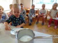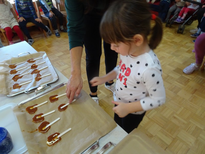- Izdelava karamelno limoninih lizik – dejavnost se navezuje na lutkovno predstavo in pesmico Zlati kamenčki