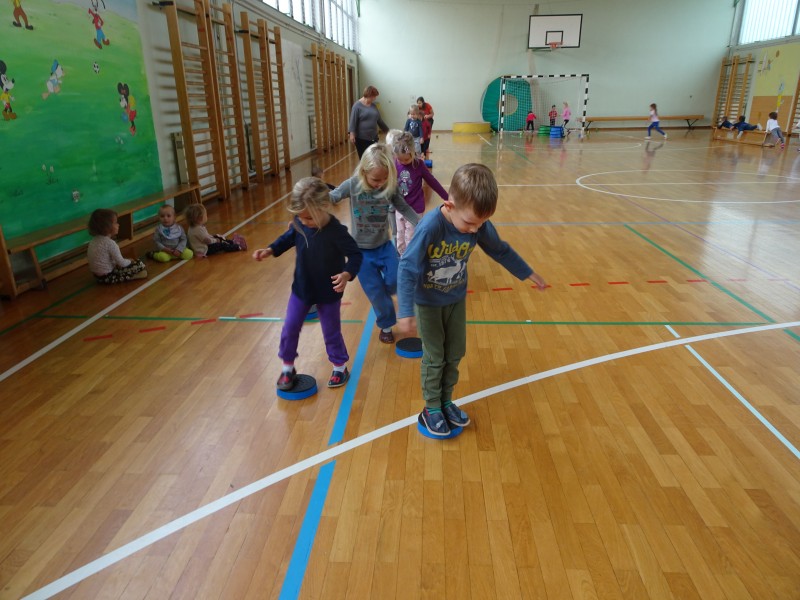 - Vadba na poligonu v telovadnici OŠ Krog (sestavljive stopnice, čutna pot, klopi, blazine, sestavljivi Wesco program za gibanje, žoge, lestev, tobogan…)