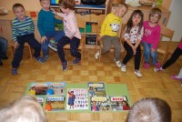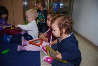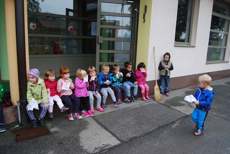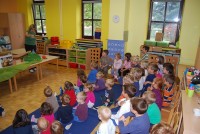 En dan smo posvetili druženju z učenci OŠ Krog, zadnji dan pa smo si ogledali lutkovno predstavo Zlati kamenčki in tudi lutka miška je bila tista, ki je z veseljem prisluhnila otrokom.