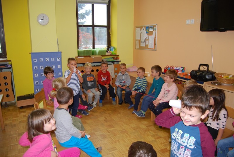 … je bilo geslo ob letošnjem tednu otroka. Da bi otroke kar najbolj spodbudili k pripovedovanju o svojih občutkih, si je vsak izdelal telefon iz jogurtovih lončkov, preko katerega je pozneje prijateljem in svojim domačim povedal kar je želel: rad te imam, babica, pazi na dedija, ki je bolan, odslej bom sam popravljal za sabo, babica rad spim pri tebi, pogrešal sem te …