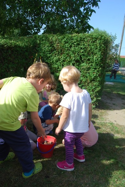 Na igrišču našega vrtca rasteta poleg ostalih dreves tudi dva oreha. V vročih poletnih dneh nam nudita prijetno senco, jeseni pa poskrbita za veselje otrok ob nabiranju in uživanju plodov. Letošnja prihajajoča jesen nas je z orehi bogato obrodila, otroci vseh treh skupin jih z veseljem nabirajo in tudi uživajo. Lepo je videti starejše otroke, ki z veseljem priskočijo na pomoč mlajšim pri lomljenju lupinic in čiščenju jedrc. Nekaj orehov bomo shranili za zimski čas, ko bomo za praznične dni spekli piškote.
