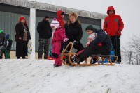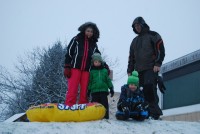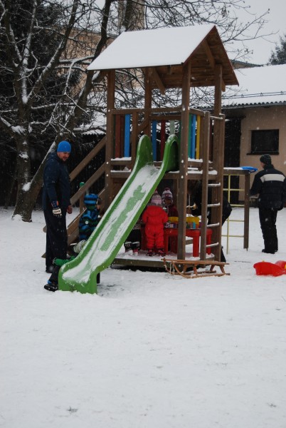 Zasneženi hribček za vrtcem nas je kar klical, da se zapodimo po njem.