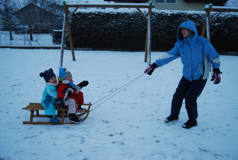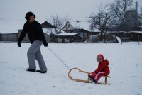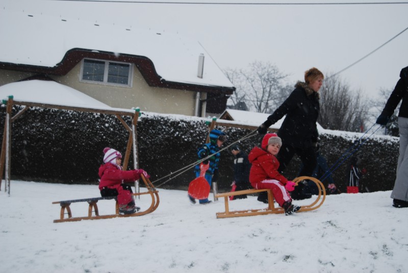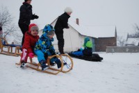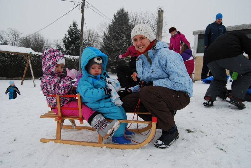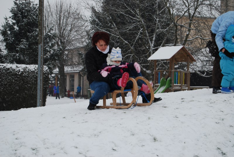 Skupaj smo se kotalili po snegu, se sankali po hribčku, se smejali in veselili toliko časa, dokler nas ni začela lotevati utrujenost.
