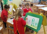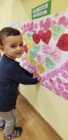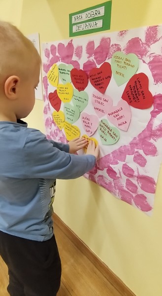Z velikim veseljem so otroci ustvarjali zapestnice prijateljstva, ki simbolizirajo povezanost v skupini, ter sodelovali pri nastajanju plakata pravil prijateljstva in plakata otroških izjav o dobrih dejanjih, ki jih vsakodnevno živimo v vrtcu in doma.